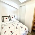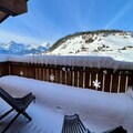 Amidst the serene beauty of the French Alps, this modern duplex apartment in the Le Cristal residence offers a perfect blend of comfort and convenience for your alpine getaway. Located at an altitude of 1350m, the residence sits directly at the foot of the Espace Diamant slopes, making it an ideal choice for ski enthusiasts. With the Mont Rond chairlift and ski school just steps away, your days can begin effortlessly with thrilling descents or scenic exploration. The northwest-facing terraces provide breathtaking views of Mont Charvin and the surrounding peaks, immersing you in the majestic alpine atmosphere. \n\nThe apartment spans two levels and accommodates up to six guests. On the first level, you’ll find a fully equipped kitchen with modern appliances, a cozy lounge area with a television, and a dining space that opens onto the first terrace. Upstairs, two thoughtfully designed bedrooms offer comfort and flexibility, with one featuring a double bed and bunk beds, and the other a queen-size bed with access to the second terrace. A spacious bathroom with double vanity and a washing machine ensures convenience, while ample storage throughout the apartment adds to its functionality. \n\nIn summer, the region transforms into a haven for outdoor enthusiasts. The Mont Rond chairlift operates three days a week, whisking visitors to panoramic views of Mont Blanc. Hiking trails and mountain bike paths crisscross the area, while Flumet lake, just 7 km away, offers leisure facilities for family-friendly fun. Nearby destinations such as Megève, Chamonix, and Annecy provide opportunities for cultural exploration, fine dining, and breathtaking scenery. \n\nWhether you seek adventure or tranquility, this apartment’s prime location and thoughtful amenities make it an exceptional choice for year-round alpine escapes. With WiFi, private parking, and a ski locker included, your stay promises both comfort and unforgettable memories.