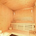 This cozy apartment offers a living room with a pull-out sofa bed, a bedroom with a double bed, and a bathroom with separate toilets. Pets are allowed with an additional charge, and bed linens are provided. The residence features a heated indoor swimming pool and sauna for relaxation after outdoor activities. Wi-Fi is available for an extra fee, and a television is included in each apartment.