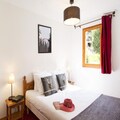 This cozy chalet offers a relaxing and peaceful environment for a comfortable stay. It features a spacious living room with a convertible sofa, a bedroom with a double bed, and another bedroom with two single beds. Pets are welcome, allowing you to bring your furry companions. The chalet is equipped with modern amenities, including free Wi-Fi and a television for entertainment, ensuring a convenient and enjoyable stay.