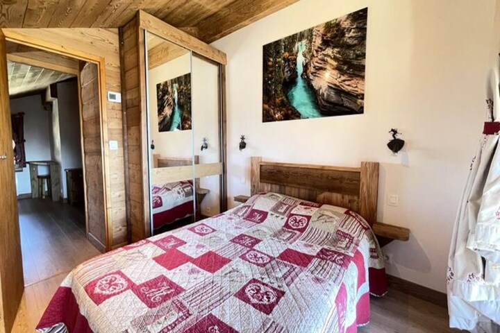 In the enchanting village of Notre Dame de Bellecombe, where alpine charm meets modern convenience, this delightful duplex apartment offers a serene retreat for up to four guests. Situated in the L'Amplitude residence, it boasts an unbeatable location just 100 meters from the Espace Diamant slopes and 300 meters from the village center. Whether you're an experienced skier or a beginner, the proximity to ski schools and shops ensures a seamless vacation experience. From the southwest-facing balcony, soak in breathtaking views of the Val d'Arly mountains and the picturesque village bell tower, a perfect backdrop for your alpine escape. \n\nThe apartment spans two levels, thoughtfully designed for comfort and practicality. The main level features a welcoming entrance hall, a bathroom with shower, a separate toilet, and a cozy living room that opens onto the balcony. The open-plan kitchen is fully equipped with modern appliances, including a refrigerator, mini-oven, microwave, dishwasher, and induction hob, making it ideal for preparing hearty meals after a day on the slopes. Upstairs, two charming bedrooms await: one with two single beds and another with a double bed, ensuring restful nights for all guests. \n\nBeyond skiing, Notre Dame de Bellecombe offers a wealth of activities year-round. In summer, explore scenic trails for hiking or mountain biking, or take the Mont Rond chairlift to admire stunning views of Mont Blanc. Families will appreciate the nearby tennis courts, playground, and Flumet lake leisure center just 4.5 kilometers away. With its unique hamlets and vibrant village atmosphere, this location is perfect for immersing yourself in the beauty of the French Alps. \n\nWhether you're seeking thrilling winter adventures or tranquil summer escapes, this apartment provides the perfect base to create unforgettable memories in the heart of the Espace Diamant.