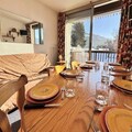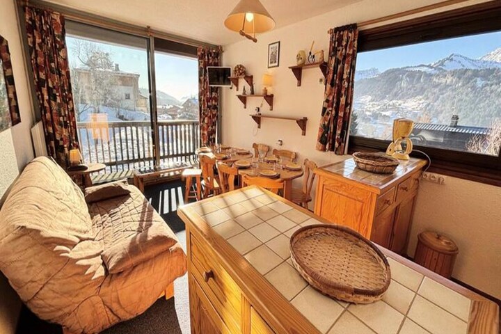 High above the Tarentaise Valley, this charming holiday apartment offers a perfect blend of alpine comfort and convenience. Wake up to breathtaking mountain views from the spacious corner balcony and step into a world of adventure just outside your door. Whether you're here to carve through powdery slopes in winter or bask in the summer sun by the private pool, this retreat promises unforgettable moments in the heart of the French Alps. \n\nThe 49 m² apartment is thoughtfully designed to accommodate up to eight guests. It features a cozy cabin bedroom with bunk beds, a second bedroom with a double bed and additional bunk beds (note: the top bunk is not suitable for children under six), and a living room with a double sofa bed. The open-plan kitchen invites you to prepare hearty meals after a day of exploration, while the separate bathroom, shower room, and WC ensure comfort and privacy for everyone. With elevator access, a ski locker, and optional private garage rental, every detail has been considered to make your stay seamless. \n\nLocated just 50 meters from the ESF ski school and ticket offices, and 100 meters from the town center, you'll find everything you need within easy reach. In summer, enjoy the on-site tennis court and outdoor swimming pool, or explore the surrounding trails and natural beauty. The large parking area at the foot of the building adds to the convenience, making this property a fantastic base for your alpine adventures. \n\nWhether you're seeking thrilling ski days, serene summer escapes, or a cozy retreat with loved ones, this apartment is the perfect choice. With its unbeatable location and welcoming amenities, it's time to create lasting memories in the picturesque French Alps.