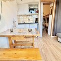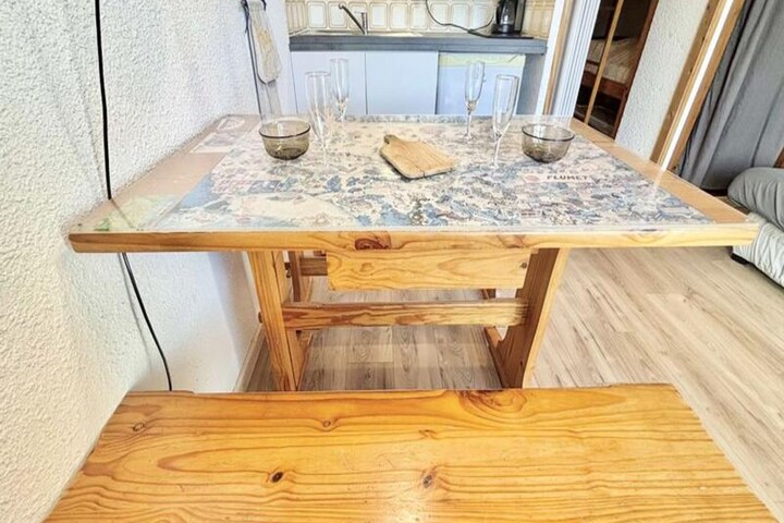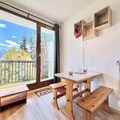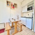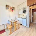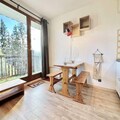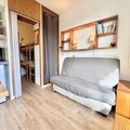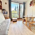 Compact yet thoughtfully designed, the 19 m² studio features an inviting living room with a comfortable sofa bed, a practical kitchenette for preparing hearty meals, and a bathroom with all essentials. The entrance includes two bunk beds, ideal for families or small groups, though the upper bunk is not suitable for children under six. A ski locker ensures your gear is always ready, while the unreserved outdoor parking space adds convenience to your stay.