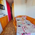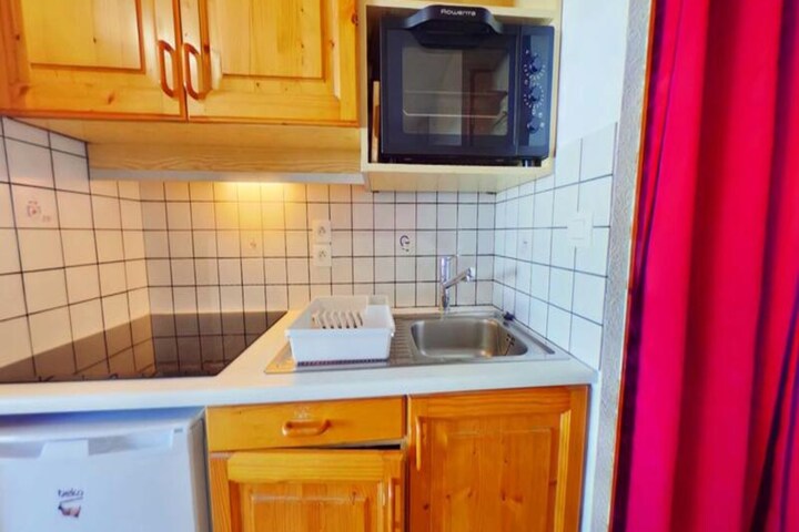 High above the bustling main avenue, this charming two-room apartment offers a cozy retreat with breathtaking views of Mont Bisanne. Bathed in sunlight thanks to its south-facing orientation, the apartment is perfectly positioned for those seeking both tranquility and easy access to the slopes, with the ski lift bridge just steps away. Whether you're planning a winter escape or a summer getaway, this residence promises a memorable alpine experience. \n\nLocated on the first floor of the residence, this thoughtfully designed apartment accommodates up to four guests. The living room features a comfortable double sofa bed, while the separate bedroom is equipped with two 90cm bunk beds (please note the upper bunk is not suitable for children under 6 years). A fully equipped kitchenette allows you to prepare meals with ease, and the bathroom with a separate toilet ensures convenience for all. The south-facing balcony invites you to soak in the serene mountain views, making it an ideal spot for your morning coffee or an evening glass of wine. \n\nThe residence's prime location ensures that everything you need is within reach. From the nearby ski lift bridge providing seamless access to the slopes to the vibrant local amenities, you'll find yourself perfectly situated to explore the region. In winter, enjoy skiing and snowboarding, while summer brings opportunities for hiking, cycling, and discovering the natural beauty of the French Alps. \n\nWhether you're a couple seeking a romantic escape or a small family looking for adventure, this cozy apartment combines comfort, convenience, and stunning scenery to create the perfect alpine retreat.