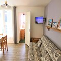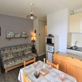 In the heart of the bustling resort, this charming studio apartment offers a cozy retreat for travelers seeking convenience and comfort. Situated on the main avenue, the residence places you steps away from shops, restaurants, and all essential amenities, making it an ideal base for your alpine adventures. The east-facing balcony invites you to start your mornings with the gentle warmth of the rising sun and views of the vibrant resort life below. \n\nThe apartment is thoughtfully designed to maximize space and functionality. It features a living room with a comfortable 140cm sofa bed, perfect for relaxing after a day of exploration. The open-plan kitchenette is fully equipped, allowing you to prepare your favorite meals with ease. A sleeping alcove with bunk beds (2 x 80cm) provides a cozy nook for restful nights, though the upper bunk is not suitable for children under six. The bathroom and separate toilet add to the practicality of this inviting space. \n\nBeyond the apartment, the resort brims with activities and attractions. Whether you're here to ski, hike, or simply soak in the alpine atmosphere, you'll find everything you need within walking distance. The lively main avenue offers a mix of local shops, dining options, and entertainment, ensuring your stay is as dynamic or relaxing as you desire. \n\nThis residence combines the charm of a mountain getaway with the ease of modern amenities, promising a memorable escape in the heart of the French Alps.