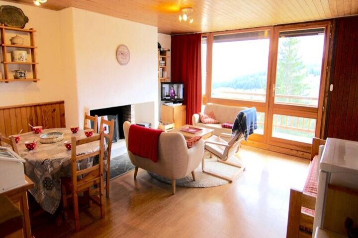 In the heart of the charming French Alps, this inviting 3-room apartment offers a cozy retreat with breathtaking views of the Mirantin mountain range and Bisanne. Situated on the raised ground floor of a peaceful residence along Rue du Mirantin, its south-facing balcony bathes the space in natural light, creating a warm and welcoming atmosphere for your alpine escape. Whether you're visiting for a winter wonderland or a summer getaway, this property provides the perfect base for your adventures. \n\nInside, the apartment is thoughtfully designed to accommodate up to six guests. The fully equipped kitchenette invites you to prepare delicious meals after a day of exploration, while the living room offers a comfortable space to unwind. The sleeping arrangements include a bedroom with two sets of bunk beds, ideal for families, and a second bedroom with a cozy double bed. A modern shower room and separate toilet ensure convenience for all guests. Please note, the decorative fireplace adds charm but is not functional. \n\nThe location is ideal for exploring the region's natural beauty and attractions. From skiing on nearby slopes in winter to hiking and cycling trails in summer, the area offers endless opportunities for outdoor enthusiasts. Local shops, restaurants, and amenities are within easy reach, ensuring a hassle-free stay. \n\nWhether you're seeking adventure or relaxation, this apartment combines comfort, convenience, and stunning alpine views, making it a delightful choice for your next holiday.