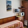 Inside, the apartment is thoughtfully designed to maximize comfort and functionality. The living room features a double sofa bed and a television, creating a relaxing space to unwind after a day on the slopes. The kitchen is equipped with a 4-burner electric hob, oven, and refrigerator with a freezer compartment, making it easy to prepare hearty meals. The bedroom includes two single bunk beds and a pull-out bed, providing flexible sleeping arrangements for families or small groups. A bathroom with a bathtub and sink, along with a separate WC, ensures convenience for all guests.