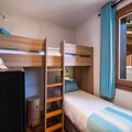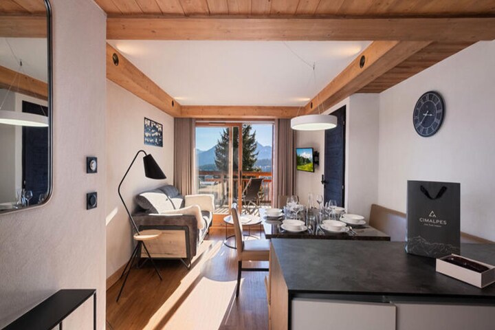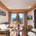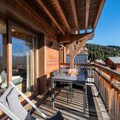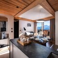 This spacious apartment, ideal for up to 6 guests, offers a comfortable and modern stay. It features a living room with a large south-west facing balcony, perfect for enjoying panoramic views of the surrounding mountains. The apartment includes a fully equipped kitchen, a dining area, and three bedrooms: one with bunk beds, another with single beds, and an en-suite bedroom with its own bathroom. Additional amenities include heated ski lockers and a covered parking space. Please note, the apartment is not accessible to guests with reduced mobility, and pets are not allowed.