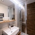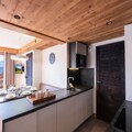 The apartment is fully equipped for a self-catered stay with a modern kitchen, bathroom with shower, and separate WC. Linen and towels are included, and the beds are made upon arrival. The wellness area, which features a pool with massage jets, a sauna, a hammam, and a Nordic bath, provides the perfect relaxation after a day outdoors. Other services include end-of-stay cleaning and bathroom products. Electric vehicle charging stations are also available on-site.