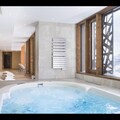 Living room(double sofa bed, TV, fireplace, seating area), open kitchen(hob(ceramic), electric kettle, coffee machine(filter), oven, microwave, dishwasher, fridge), bedroom(double bed), bedroom(double bed), bedroom(single bed, single bed), bathroom(bathtub or shower), bathroom(bathtub or shower), Internet access, sauna, balcony or terrace, swimming pool(shared with other guests, indoor), table football, billiards, hairdryer