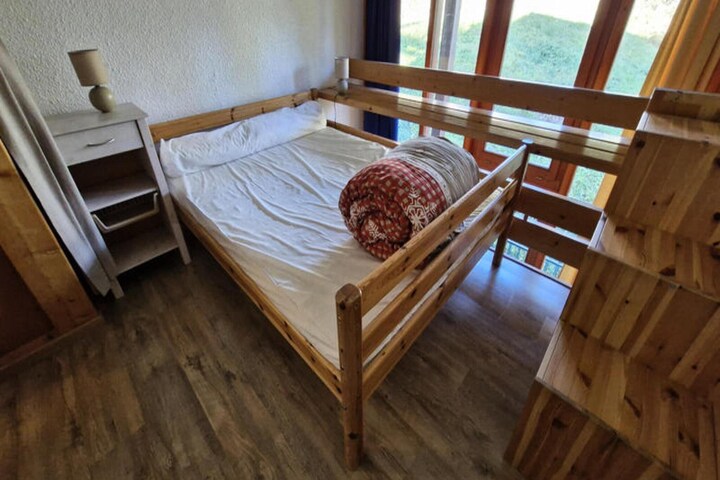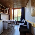 This cozy 2-room duplex apartment in the Aiguille Grive 1 residence comfortably accommodates up to 5 guests, making it perfect for small families or groups. Located on the 5th floor with a northeast-facing balcony, the apartment features a mezzanine bedroom with a double bed (140x190 cm) and an additional sleeping area with a single bed (80x190 cm) and a pull-out sofa bed (120x190 cm). It is also pet-friendly, allowing you to bring your furry companions for an additional fee. The apartment is equipped with all the essential amenities, including a television in the living room, free Wi-Fi, and a baby bed upon request.