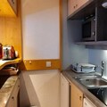 The apartment's fully equipped kitchen includes a refrigerator, dishwasher, toaster, kettle, coffee maker, and combi-grill microwave, making it convenient for self-catering. The bathroom features a bathtub, and there is a separate toilet. For convenience, you can also rent a covered parking space in the residence’s parking lot.