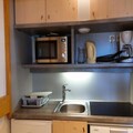 This 40m² apartment is located on the 11th floor of a residence with elevator access, offering a comfortable stay for up to 6 people. It features a living room with two single beds, a bedroom with two single beds, and a mountain corner with two bunk beds (note: the upper bunk is not suitable for children under 6 years old). Pets are welcome, making it a great choice for pet owners. The apartment is non-smoking and comes with essential bedding such as duvets, but bed linen is not provided. A TV and Wi-Fi access are available for entertainment.