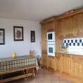 The apartment features an open-plan kitchen with ceramic hobs, oven, microwave, dishwasher, and refrigerator with freezer. The living room offers a television and a southwest-facing terrace with stunning views of the ski area and valley. A bathroom with a bathtub and a separate toilet provide convenience. Covered parking and a washing machine are also available for your stay.