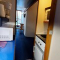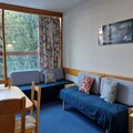 This 25m² studio apartment, located on the 5th floor of the Miravidi Residence, comfortably accommodates up to 4 people. It features two single beds in the living room, along with a mountain corner equipped with a single bed and a pull-out bed. The apartment is pet-friendly with an additional fee and includes duvets for each bed. Bed and bathroom linen are available for an extra charge. A deposit is required on arrival. The studio has a North-East facing balcony, offering a peaceful outdoor space.
