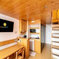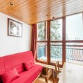 This charming apartment in the Arc 1800 ski resort accommodates up to 6 guests with a spacious living room featuring a sofa bed for two and a wooden dining area. The two mezzanine bedrooms include a queen-size bed with memory foam mattress and a double bed with new bedding. The apartment is pet-friendly, making it perfect for those traveling with pets. It also offers convenient storage, a balcony, and a TV for your comfort.