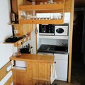 The apartment includes an open kitchen equipped with basic amenities such as a stovetop and refrigerator, ensuring you can prepare meals during your stay. The bathroom is fitted with a shower and toilet. Additional services, such as Wi-Fi access, baby kits, and linen rental, are available for an extra fee. End-of-stay cleaning is mandatory and can be arranged upon arrival. This functional space is ideal for a relaxed and affordable alpine vacation.