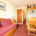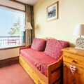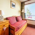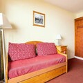 This charming 2-room apartment comfortably accommodates up to 5 guests. The living room features a trundle bed, a daybed, and a cozy sofa, while the bedroom includes two single beds. The property is pet-friendly, ensuring your furry friends are welcome to join. Guests can enjoy a balcony with stunning mountain views, west-facing for beautiful sunsets. A dedicated, covered parking spot is available for added convenience.