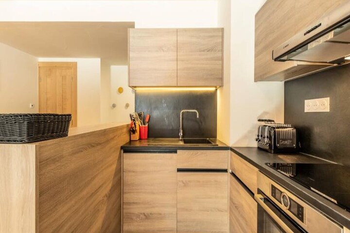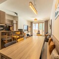 With a prime location directly on the Cachette slope, this apartment offers ski-in/ski-out access and stunning panoramic views of the mountains and valley. It is centrally located in the Paradiski region, with easy access to Arcs 1800, 1950, and 2000. Explore nearby cafes, restaurants, and the French Touch grocery store offering takeaway meals and delivery services.