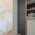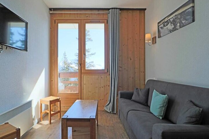 This cozy apartment, located in the ski-in/ski-out RESIDENCE LE VANOISE in the Chavonnes Hautes district, offers 31m² of space for up to 5 people. It features a living room with a convertible sofa and TV, ideal for relaxation after a day on the slopes. The bedroom offers flexibility with two single beds, one of which slides under the other to create a double, and a third single bed on the mezzanine. The property is pet-friendly, making it perfect for families or groups with pets. A balcony provides a lovely spot to enjoy the views, and the apartment is located on the 5th floor, with elevator access.