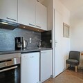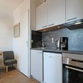 The apartment comes with a fully equipped kitchen, including an electric hob, oven, microwave, dishwasher, and refrigerator, allowing for home-cooked meals. The bathroom features a bathtub, and there is a separate WC. Please note that sheets, towels, and end-of-stay cleaning are not included in the rental price but are available for an additional charge.