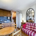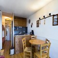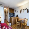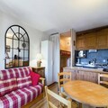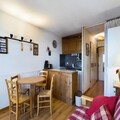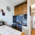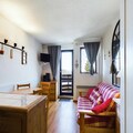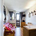 This cozy studio apartment, located on the second floor, is designed for 4 people. It includes two bunk beds separated by a curtain in the entrance area and a convertible sofa bed in the living room for two. The property is ideal for small families or friends looking for a functional space. The apartment also offers a beautiful view of the valley and features a south-facing balcony, perfect for enjoying the surroundings. Heating and TV are included, though sheets and towels are available for an additional fee.