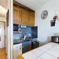 Inside, the apartment includes a fully equipped kitchenette with 3 electric hotplates, a refrigerator, combined microwave oven, and a dishwasher, allowing guests to prepare their meals comfortably. The bathroom and separate toilet provide additional convenience, ensuring a comfortable and functional stay for all guests.