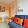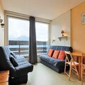 This cozy 26 m² chalet-style studio, located in the Residence La Louie Blanche, offers a welcoming retreat for up to four guests. The apartment features two double convertible sofas in the living area, perfect for a restful sleep after a day of exploration. A TV is provided for your entertainment, and the south-facing balcony offers breathtaking views of the Tarentaise Valley. The property includes a spacious bathroom, a separate toilet, and ample storage. Please note that pets are not allowed, and end-of-stay cleaning, linens, and towels are available for an additional fee.