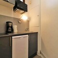 The studio includes a newly renovated, fully equipped kitchen with two electric hotplates, a refrigerator, a mini oven, and a microwave, allowing you to prepare meals at your leisure. Heating ensures a cozy stay during colder months, and the south-facing balcony provides a serene spot to unwind. Whether you're here for skiing or exploring the area, this studio offers comfort and convenience in an unbeatable location.