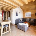 The apartment is designed for comfort and convenience, with a modern kitchen and a bathroom with a separate WC. Upstairs, there is an additional bedroom with two single beds and an adjoining shower room. Linen is included, and beds are made upon arrival. The apartment also provides heating for added comfort, along with end-of-stay cleaning included in the booking. Guests can enjoy a hassle-free stay with all essential services taken care of, ensuring a relaxing and memorable vacation.