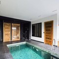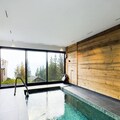 The chalet features a fully equipped American kitchen with an induction hob, fridge/freezer, dishwasher, oven, and microwave. A spacious living room with a fireplace, dining area, and a 51m² relaxation area with a swimming pool, sauna, and shower make it ideal for relaxation. Three garage parking spaces with electric vehicle charging are provided. End-of-stay cleaning, sheets, and towels are included in the rental.