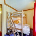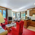 This cozy apartment offers spacious accommodations with two bedrooms—one with a double bed and the other with two single beds and a mezzanine with a double bed. The living room includes a sofa bed and a dining area. The apartment is equipped with free Wi-Fi, a ski locker, a safe, and a hairdryer. Pets are allowed for an additional fee, ensuring everyone can join the stay.