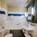 The apartment includes a fully equipped kitchen, a bathroom with a bathtub and separate toilet, and a terrace with seating for outdoor dining. Additional features include a washing machine and access to on-site wellness facilities such as a jacuzzi and fitness center. Paid parking is available nearby, and baby kits are available upon request.