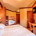 This cozy apartment is perfect for a family or group getaway, offering two comfortable bedrooms and a spacious living area. One bedroom is equipped with a double bed, while the second features two single beds and a set of bunk beds. The apartment also includes two bathrooms with bathtubs, a fully furnished kitchen, and a living room with a sofa bed. The property is pet-friendly, with some restrictions, and comes with convenient amenities such as free Wi-Fi, a flat-screen TV, and ski-in/ski-out access. End-of-stay cleaning is included, ensuring a hassle-free vacation.