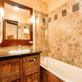 The apartment features a well-equipped American-style kitchen with modern appliances, perfect for preparing meals. The bathrooms are equipped with electric towel dryers, and there's a washing machine for added convenience. The balcony provides a lovely mountain view, and guests can enjoy access to the outdoor heated pool, sauna, and fitness center, depending on the building. Parking is available for an additional fee.