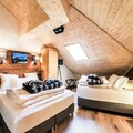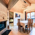 This spacious holiday home offers a comfortable stay with two well-appointed bedrooms: one featuring two double beds and the other with one double and two single beds. The living room includes a standard sofa, and there is a dining area with a table and eight chairs. The property is pet-friendly (upon request and with an additional fee) and provides amenities such as Wi-Fi, a TV, and heating. With ski-in/ski-out access during winter, it’s ideal for outdoor enthusiasts. The village setting is pedestrian-only in summer, ensuring a peaceful environment.