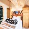 The property is ideally located near numerous cafes, restaurants, and shops, with the renowned Paradiski ski area just a short distance away. Visitors can enjoy skiing in the winter and biking or hiking through the stunning Vanoise National Park in the summer. The region offers panoramic views of Mont Blanc and features a 1,000m² wellness center, multiple outdoor heated pools, and a fitness center, making it perfect for both relaxation and adventure.