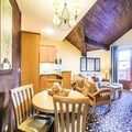 The apartment is well-equipped for self-catering with an open-plan kitchen, which includes all the necessary appliances. The bathroom features a bathtub-shower combination, and there is a separate WC for added convenience. The property also offers access to shared amenities, including a heated outdoor pool, fitness center, and sauna (subject to availability), as well as housekeeping services and linens provided. Parking is available for an additional fee.