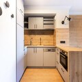 The apartment features two bathrooms, one with a bathtub and one with a shower, and includes three separate toilets. The fully equipped kitchen opens to the living room, making it ideal for family meals. Additional amenities include a ski locker, access to a heated indoor pool, and included housekeeping. Paid parking is available, and a baby kit can be requested.