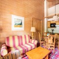 This charming apartment offers comfortable accommodations with two single beds and a sofa bed, ideal for up to four guests. It is pet-friendly (additional charges apply) and features modern amenities like Wi-Fi, a flat-screen TV, and a ski locker. Guests can unwind after a day of skiing at the wellness center, equipped with saunas, hot tubs, and a fitness room. The property is conveniently located near ski-in, ski-out access, perfect for winter sports enthusiasts.