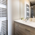 The apartment features a well-equipped kitchen, perfect for preparing meals after a day on the slopes or hiking in the nearby Vanoise National Park. Its cozy design ensures comfort and relaxation, with a bathroom offering all the necessary amenities for a pleasant stay. This property provides an excellent base for exploring the Franco-Italian ski area, or simply enjoying the charm of the mountain village.