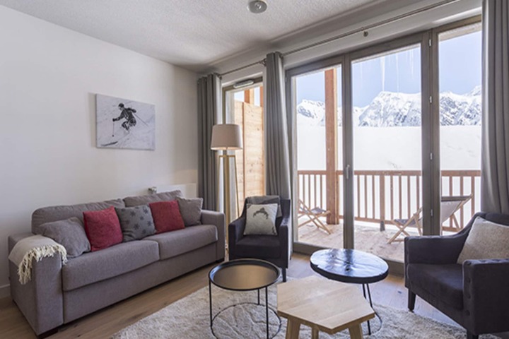 The apartment features a fully equipped kitchen, perfect for preparing meals after a day of skiing or exploring the local area. The open-plan design offers a spacious and welcoming atmosphere, while the two bathrooms provide all the necessary conveniences for a comfortable stay. Whether you’re hitting the slopes or relaxing at the apartment, this property offers an ideal base for your La Rosière adventure.