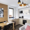 The apartment features a fully equipped kitchen, making it easy to prepare meals after a day of skiing or exploring the resort. The spacious living areas ensure comfort and relaxation, while the two bathrooms offer all the necessary amenities for a convenient stay. This apartment provides an excellent base for exploring the ski slopes of La Rosière or simply unwinding in the peaceful surroundings of the Tarentaise Valley.