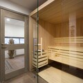 Living room(double sofa bed, TV(flatscreen), seating area), open kitchen(hob(ceramic), electric kettle, toaster, coffee machine, oven, microwave, dishwasher, fridge, dishes and cutlery), bedroom(double bed(180 x 200 cm)), bedroom(double bed(160 x 200 cm)), bedroom(single bed(90 x 200 cm), single bed), bathroom(toilet), toilet(toilet), playroom, Internet access, shower, shower, sauna, balcony or terrace, parking, Mountain view