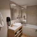 The apartment opens into a welcoming living room with a sofa bed and TV, perfect for relaxing evenings, game nights, or planning the next day’s adventure. The fully equipped kitchenette makes group dining effortless - for hearty breakfasts before the slopes and slow dinners after sunset. Sleeping arrangements are ideal for flexible groups: two bedrooms with double beds and two additional bedrooms offering twin zip-beds, allowing the layout to adapt comfortably for couples, children, or friends. The apartment includes both a separate shower and a shower room with a toilet, keeping mornings smooth even with a full house.