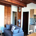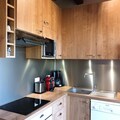 The 42 m² apartment is thoughtfully designed to accommodate up to six guests, making it ideal for families or small groups. The cozy living area features a double sofa bed, while the separate bedroom offers a comfortable double bed. A sleeping alcove with bunk beds adds flexibility, though the upper bunk is not suitable for children under six. The kitchen is fully equipped with modern appliances, including ceramic hobs, an oven, a microwave, a dishwasher, and a refrigerator with a freezer, ensuring you have everything needed to prepare delicious meals. Additional amenities such as Wi-Fi, a television, a washing machine, and a ski locker enhance the convenience and comfort of your stay.