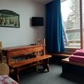 This 33m² studio, located on the third floor of a traditional residence, comfortably accommodates up to four guests. The living area features a pull-out sofa bed, while a sleeping alcove in the entrance hall offers a set of bunk beds, ideal for families or small groups. The kitchen is fully equipped with a ceramic hob, oven, microwave, dishwasher, and refrigerator, ensuring you have everything needed to prepare hearty meals after a day of adventure. Additional amenities include a television, washing machine, and a ski locker for your convenience. Free Wi-Fi access keeps you connected, and pets are welcome for an added fee, making it a home away from home for everyone.