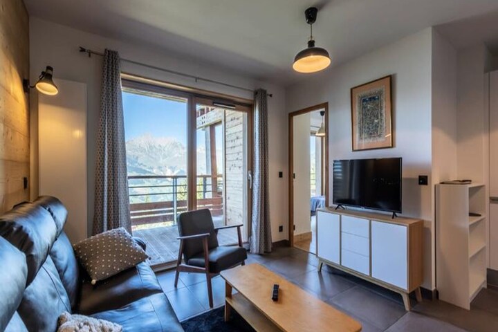 Where the majestic peaks of the French Alps meet the vibrant energy of Les Arcs 1800, this premium 4-star residence, L'Ecrin, offers an unparalleled alpine retreat. With a contemporary design infused with warm wooden accents, this spacious 72m² apartment welcomes you to a world of comfort and style. Its west-facing terrace provides breathtaking views of the Tarentaise Valley, making it the perfect spot to unwind after a day of mountain adventures. Whether you're here for skiing or summer escapades, this property is a haven for relaxation and rejuvenation. \n\nInside, the apartment is thoughtfully designed to accommodate up to six guests. It features two elegant bedrooms, a cozy sleeping alcove with bunk beds, and a bright living/dining area perfect for gathering with loved ones. The open-plan kitchen is fully equipped with modern appliances, including a Nespresso machine, oven, and dishwasher, ensuring a seamless self-catering experience. Luxurious touches like hotel-quality linens, end-of-stay cleaning, and access to the residence's wellness area (complete with a sauna, steam room, and fitness room) elevate your stay to a new level of indulgence. \n\nSituated in the heart of the lively Villards district, the apartment is just a two-minute walk from ski schools, slopes, and a variety of shops and restaurants. In summer, the area transforms into an outdoor paradise with mountain biking trails, hiking paths, golf courses, and thrilling activities like paragliding and whitewater sports. The nearby aquatic center and treetop adventure park add even more excitement to your alpine getaway. \n\nWhether you're seeking the thrill of Paradiski's 425 km of slopes or the tranquility of the Vanoise National Park, this residence offers the perfect base for creating unforgettable memories in the mountains. Let the charm of Les Arcs and the comfort of L'Ecrin redefine your idea of a perfect holiday.