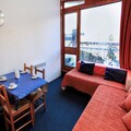 High above the vibrant Charvet shopping mall, this cozy mountain studio offers a true ski-in/ski-out experience in the heart of the Paradiski domain. Perched on the 11th floor of the Belles Challes residence, it provides breathtaking northeast-facing views of Mont Blanc and the surrounding fir-covered peaks, creating an idyllic alpine retreat. Whether you're here to carve through fresh powder or simply soak in the serene mountain atmosphere, this property places you at the center of it all. \n\nDesigned for up to four guests, the studio's clever layout includes a mountain corner with two bunk beds and a living room featuring two comfortable sofa beds. The kitchenette is fully equipped with modern appliances such as a mini-oven, microwave, refrigerator, and dishwasher, making it easy to prepare hearty meals after a day on the slopes. The carpeted living space, TV, and private balcony ensure a warm and inviting environment to relax and unwind. Please note that the bunk beds are not suitable for children under six years old, and pets are not allowed. \n\nStep outside, and you'll find yourself directly on the slopes, with shops, restaurants, and the Charvet inter-resort shuttle stop just moments away. For those arriving by car, both covered and outdoor parking options are available nearby (paid during winter). The residence also offers free resort Wi-Fi, ensuring you stay connected throughout your stay. \n\nWith its unbeatable location, stunning views, and thoughtful amenities, this studio is the perfect base for an unforgettable alpine adventure. Whether you're visiting in winter for skiing or in summer for hiking and exploring, this charming retreat promises memories to last a lifetime.