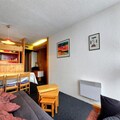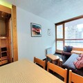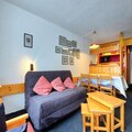 High above the bustling heart of Villards in Les Arcs 1800, this charming alpine apartment offers a warm and welcoming retreat for your mountain getaway. With its southwest-facing balcony, you’ll be treated to breathtaking views of the valley and unforgettable sunsets that paint the sky in hues of gold and crimson. Whether you’re here for the thrill of skiing or the serenity of summer hikes, this residence places you in the center of it all, with ski-in/ski-out access ensuring effortless adventures right from your doorstep. \n\nInside, the apartment is thoughtfully designed to accommodate up to six guests. The living room features a comfortable sofa bed, while the bedroom offers two single beds, and the cozy cabin area includes bunk beds perfect for children over six. The fully equipped kitchen invites you to prepare hearty meals after a day of exploration, complete with electric hobs, a microwave/oven, dishwasher, and essential appliances like a coffee maker and kettle. Modern conveniences such as free Wi-Fi and eco-friendly linens ensure a comfortable and sustainable stay. \n\nStep outside and discover the vibrant Villards village, where shops, restaurants, and après-ski activities are just a short stroll away. In winter, the slopes beckon with pristine snow, while summer transforms the area into a haven for hikers and cyclists. Nearby shuttle stops provide easy access to other resort areas, making it simple to explore the wider Paradiski domain. \n\nWhether you’re chasing powdery pistes or tranquil trails, this apartment offers the perfect blend of comfort, convenience, and alpine charm. Let the beauty of the French Alps inspire unforgettable memories during your stay.