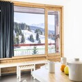 High above the vibrant Charvet shopping mall, this beautifully renovated 3-room cabin apartment offers a unique alpine retreat with ski-in/ski-out convenience. Imagine stepping out onto your south-facing balcony, taking in the breathtaking views of the slopes, or enjoying the serene beauty of Mont Blanc from the north-east-facing balcony. Located on the 15th floor of the Lauzières du Charvet residence, this property is perfect for those seeking a blend of comfort, style, and direct access to the heart of the French Alps. \n\nThe apartment spans 54m² and comfortably accommodates 6 to 7 guests. The living room features two cozy sofa beds and a TV, creating a welcoming space to unwind after a day on the slopes. The two cabin bedrooms include a double bed in one and a single bed with bunk beds in the other, making it ideal for families or groups of friends. The fully equipped kitchen boasts modern appliances such as induction hobs, an oven, a microwave, a refrigerator, and a dishwasher, ensuring you have everything needed to prepare hearty meals. Two bathrooms, one with a shower and WC, add to the convenience, while eco-friendly linens and end-of-stay cleaning are available for an additional fee.\n\nSituated at the foot of the slopes and shops, the residence provides easy access to the ESF Skimômes children's mini club, nearby parking options, and a shuttle stop connecting you to other parts of the resort. Whether you're here to ski, explore the charming village, or simply relax, everything you need is within reach. In winter, the covered and outdoor parking options ensure hassle-free access, while the ski locker at the entrance keeps your gear secure.\n\nWith its prime location, stunning views, and thoughtful amenities, this apartment is your gateway to unforgettable alpine adventures. Whether you're drawn by the thrill of the slopes or the tranquility of the mountains, this residence promises a memorable stay in the heart of Les Arcs 1800.